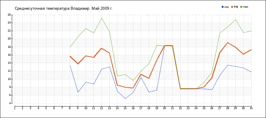 | 29.05.2009 | 13.2 | 17.9 | 24.8 |