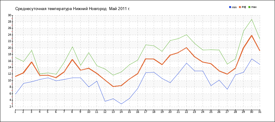 | 30.05.2011 | 16.7 | 23.8 | 28.8 |