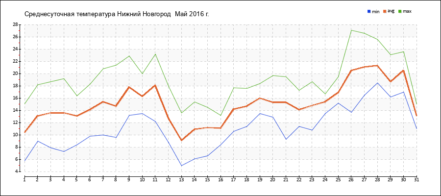| 26.05.2016 | 13.7 | 20.5 | 27.1 |