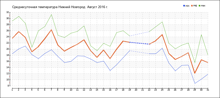| 07.08.2016 | 19.8 | 26.3 | 31.3 |