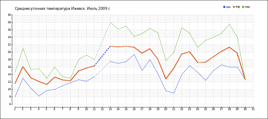 | 11.07.2009 | 13.4 | 16.3 | 18.0 |