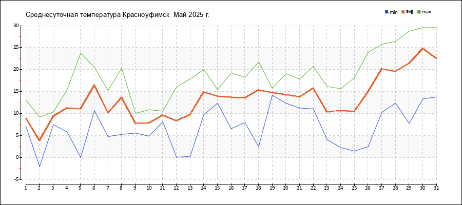 | 31.05.2025 | 13.8 | 22.6 | 29.6 |