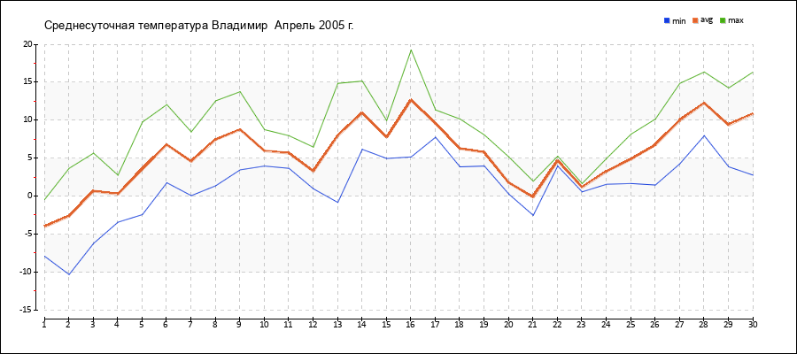 | 13.04.2005 | -0.8 | 8.0 | 14.9 |