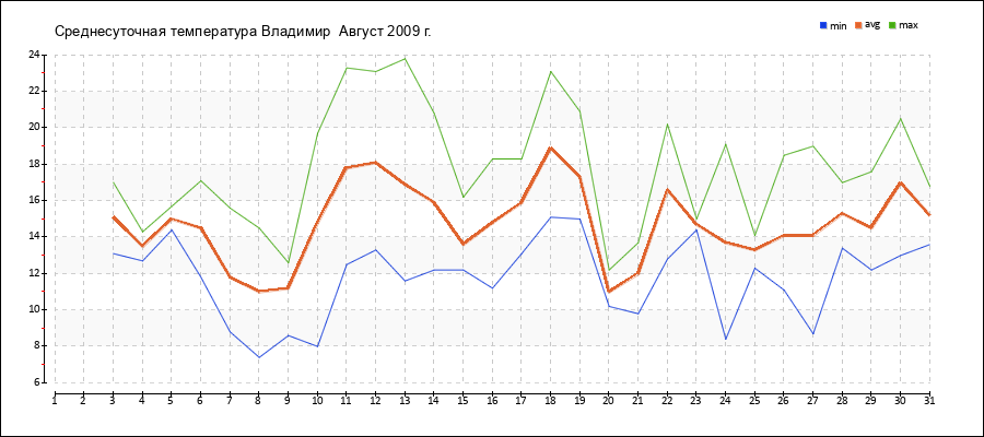 | 17.08.2009 | 13.1 | 15.9 | 18.3 |