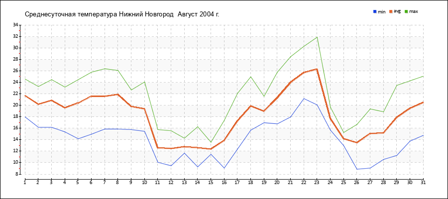| 22.08.2004 | 21.2 | 25.7 | 30.3 |