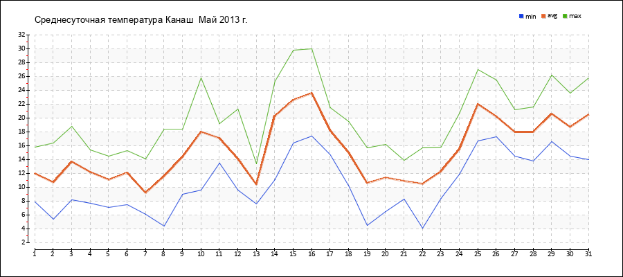 | 25.05.2013 | 16.7 | 22.0 | 27.0 |