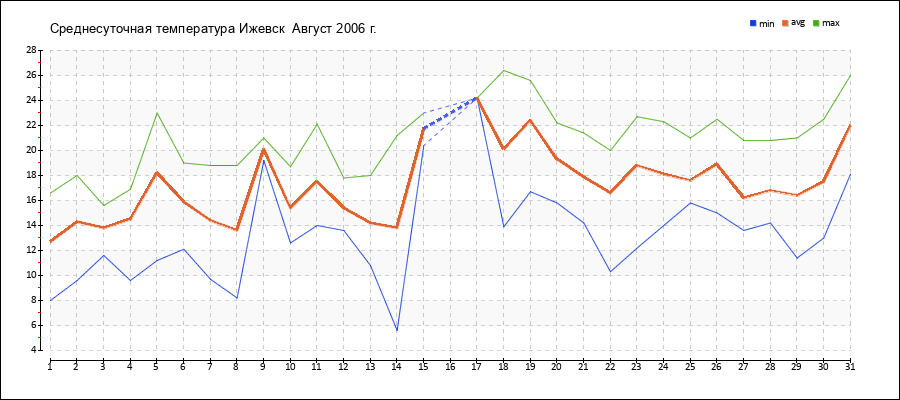 | 18.08.2006 | 13.9 | 20.1 | 26.4 |