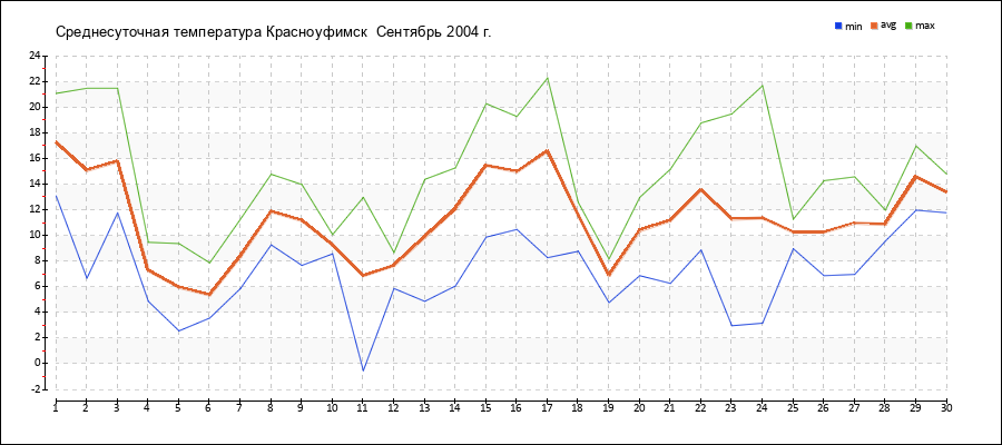 | 11.09.2004 | -0.5 | 6.9 | 13.0 |