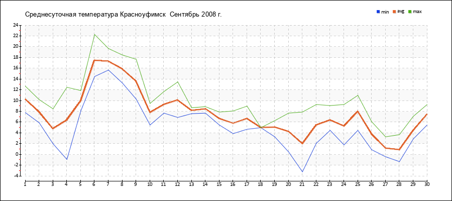 | 04.09.2008 | -0.9 | 6.4 | 12.5 |
